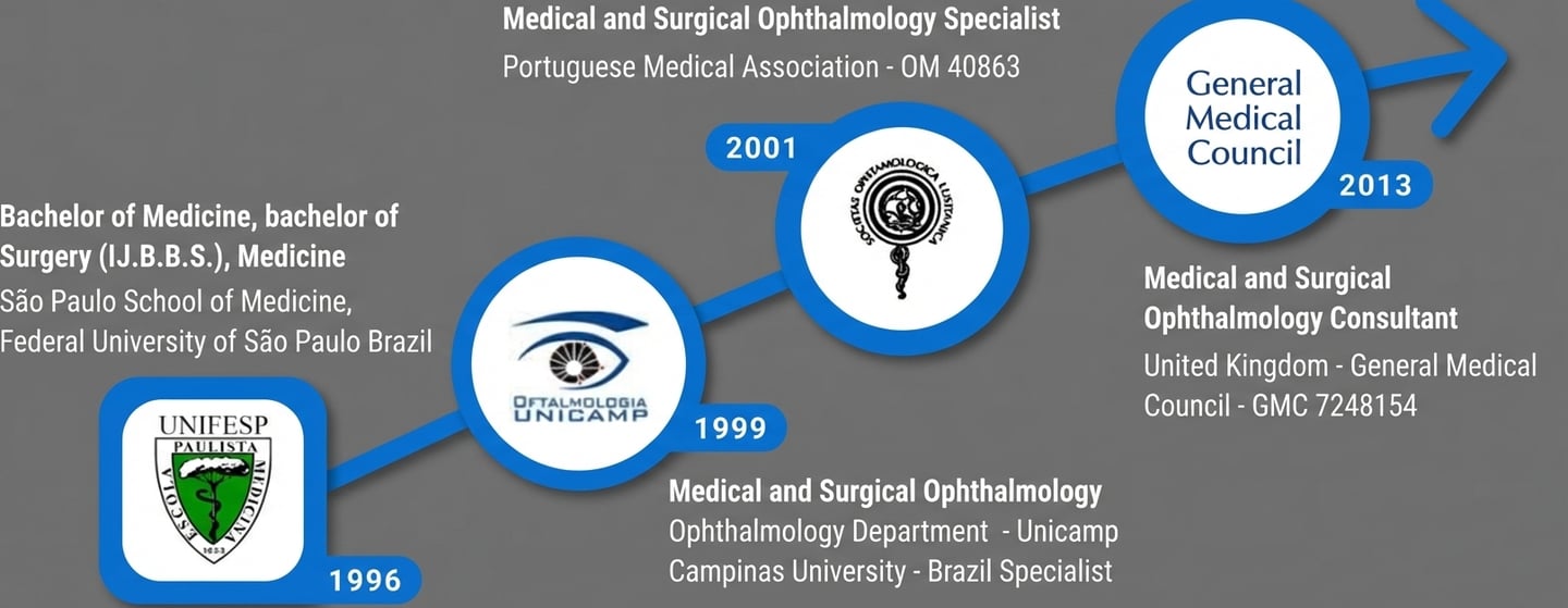 Formei-me em Medicina pela Faculdade de Medicina da Universidade Federal de São Paulo (1996) e especializei-me em Oftalmologia pelo Hospital das Clínicas da Universidade Estadual de Campinas (Unicamp). Desde o início da carreira, atuo como organizador e médico voluntário em projetos sociais de saúde ocular e prevenção da cegueira, em parceria com instituições como Rotary International, Lions Club, USAID e lideranças da sociedade civil.